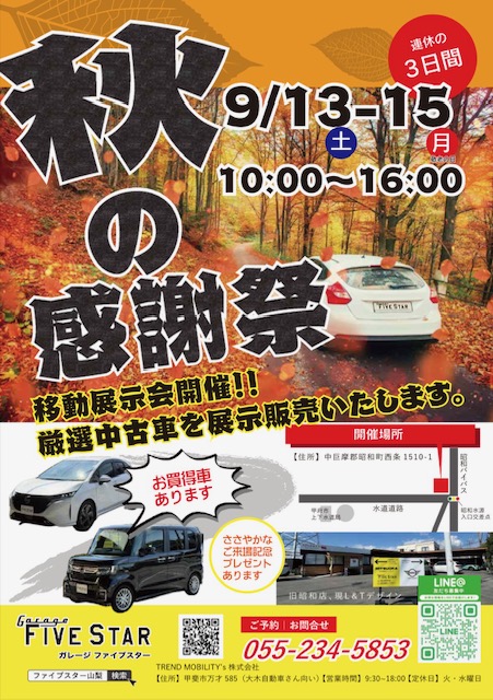 本日は9月10月のキャンペーンと今週末の出張イベントについてのご紹介をいたします‼