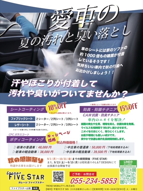 暑い夏を頑張ってくれた愛車の夏の汚れと臭い落としはいかがでしょうか?🚙